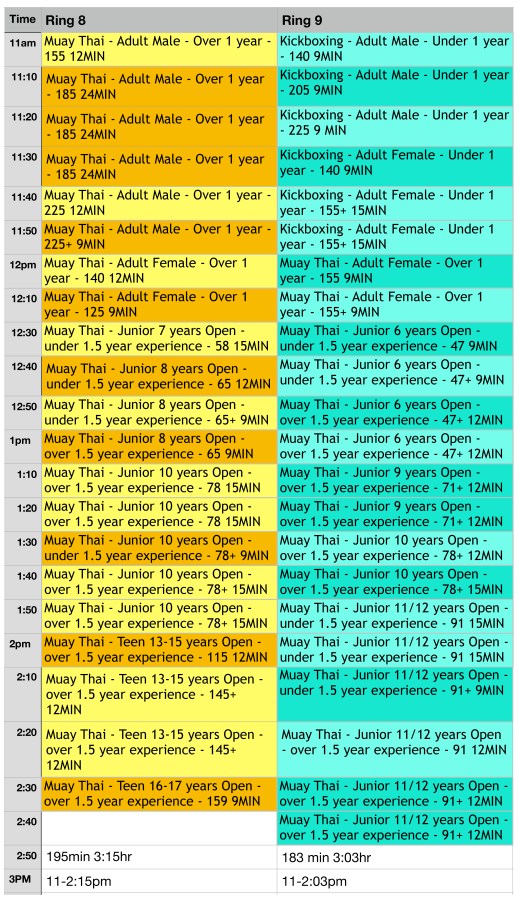 MBS 2018 Muay Thai Kickboxing Schedule